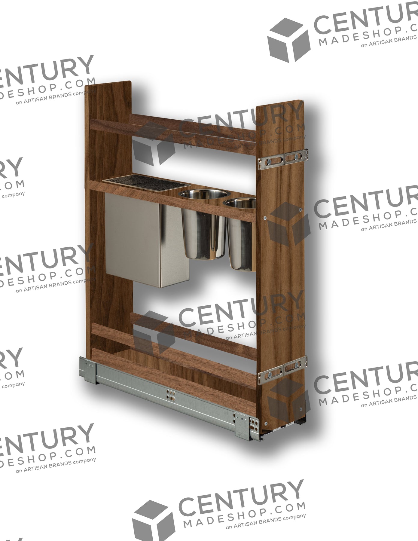 Upgrade your kitchen storage with the Century Components 6" Riviera Series Face Frame Pullout Canister Organizer with Knife Block—a versatile and elegant solution designed to keep your utensils and knives organized and easily accessible. Crafted in the USA from solid maple hardwood and built for face frame cabinets, this premium pullout organizer combines traditional craftsmanship with modern functionality. Featuring integrated stainless steel canisters alongside a built-in knife block, it’s the perfect all-in-one organizer for the serious home chef.
