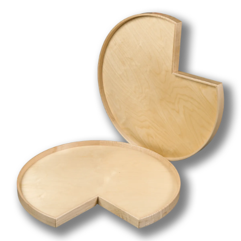 Designed for cabinetmakers and installers who prefer to drill their own hardware holes, these trays come undrilled for full customization. Ideal for replacing old shelves or building a new lazy Susan system from scratch, they are compatible with most standard center pole hardware systems (sold separately).